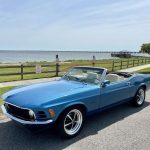 The medium metallic blue, though flawed is still stunning and eye catching and the white top and interior compliment it perfectly. 1970 was considered the last year of the 1st generation Mustang and you’ll find it to be much more quick and nimble than the earlier convertible Mustangs. Its styling is distinctly Mustang, but the 1970 was a one year only body style, and stands out as unique amongst vintage Mustangs.
